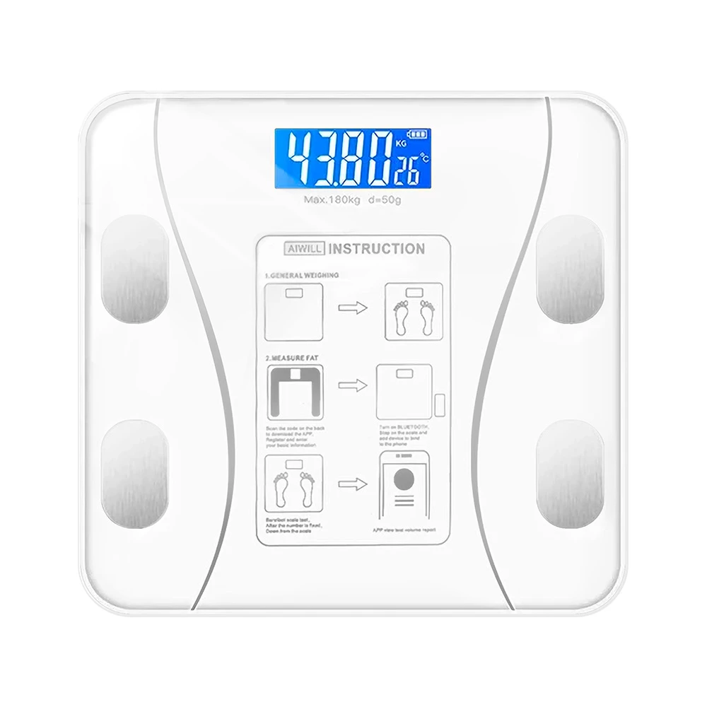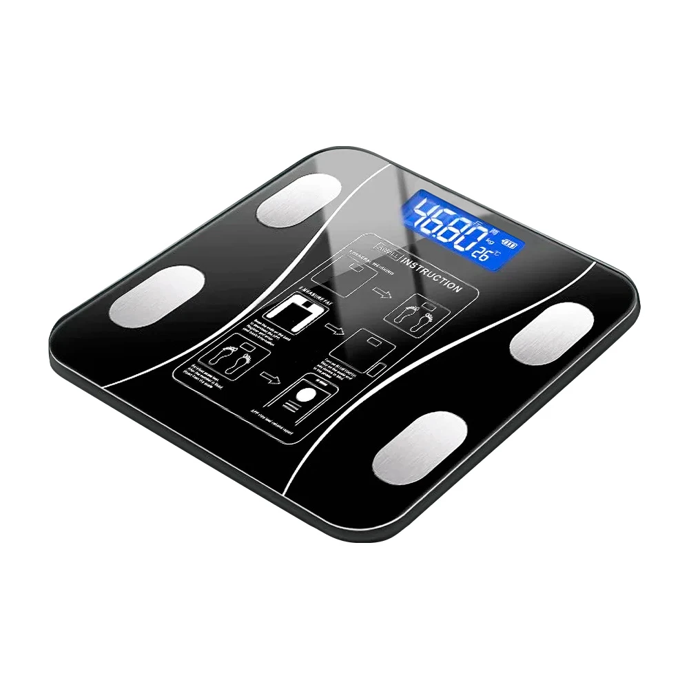 Su diseño moderno con vidrio templado, pantalla digital LCD y sensores metálicos garantiza mediciones confiables y una experiencia práctica en el día a día.