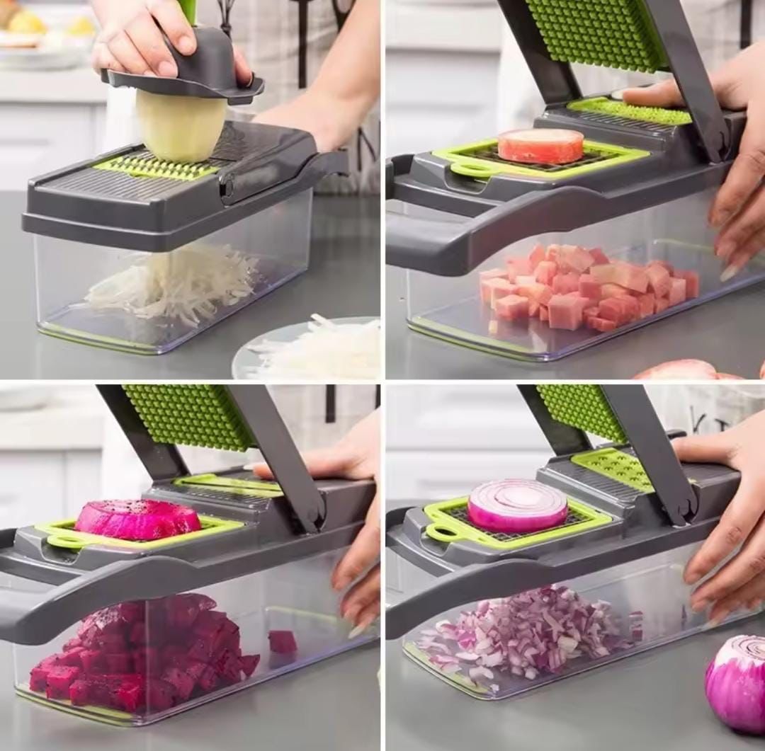 ¡Prepara el almuerzo en la mitad de tiempo y sin llorar! 🧅🥗 ¿Cansado de picar verduras a mano, terminar con olor a ajo y llorar con la cebolla? Este Picador Multifuncional es la herramienta definitiva que hará el trabajo pesado por ti en un solo movimiento.